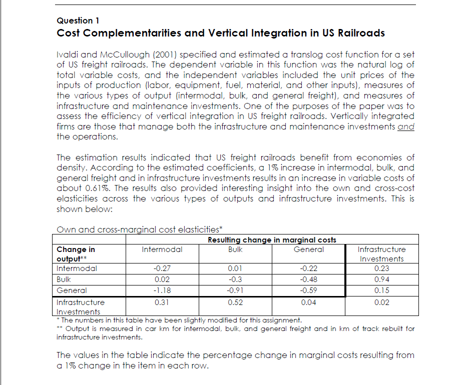 Question 1 Cost Complementarities and Vertical | Chegg.com