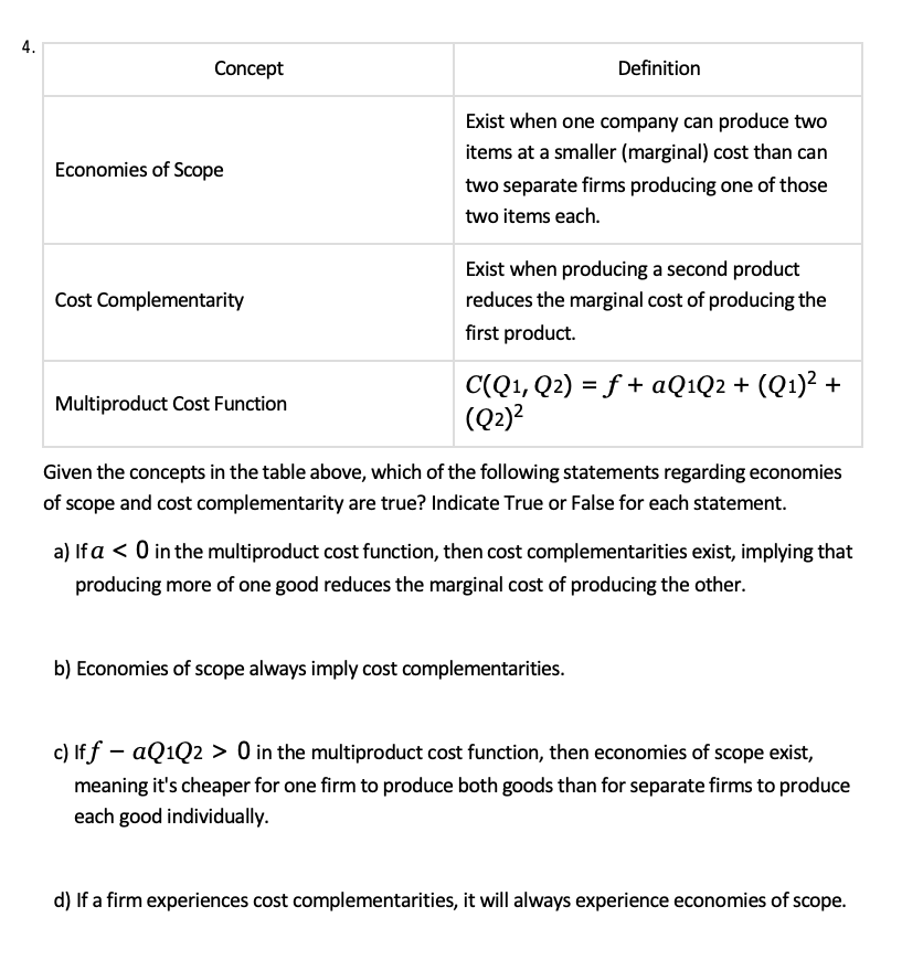 Solved Economies of scale and scope, cost complementarity, | Chegg.com