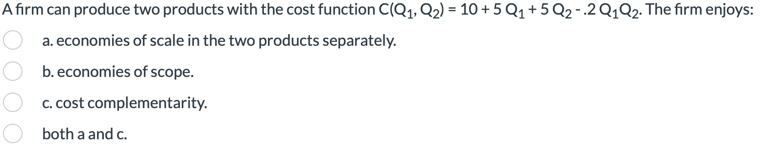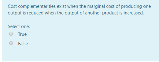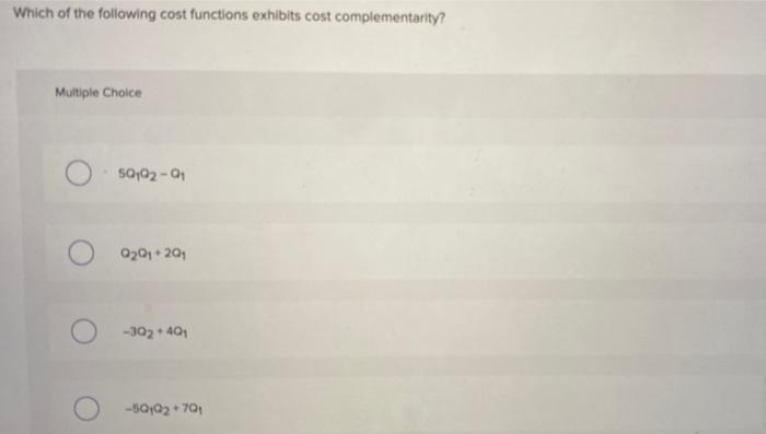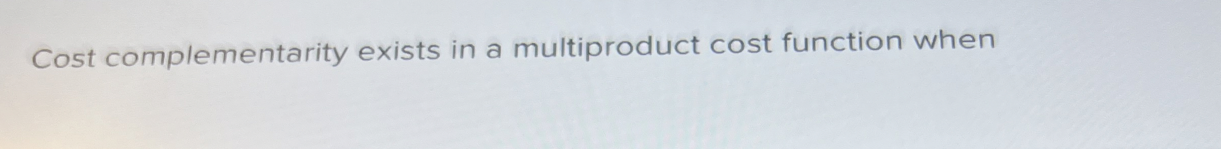Solved Cost complementarity exists in a multiproduct cost | Chegg.com