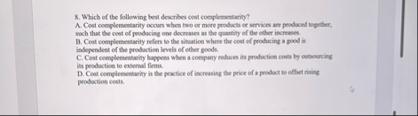 Solved Cost complementarity is often present when:Show | Chegg.com