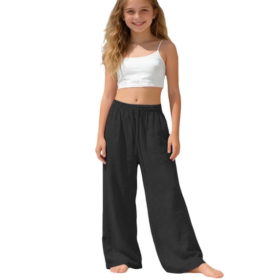 Byoo Teen Girls' Linen Trousers Solid Color Wide Leg Drawstring Elastic ...