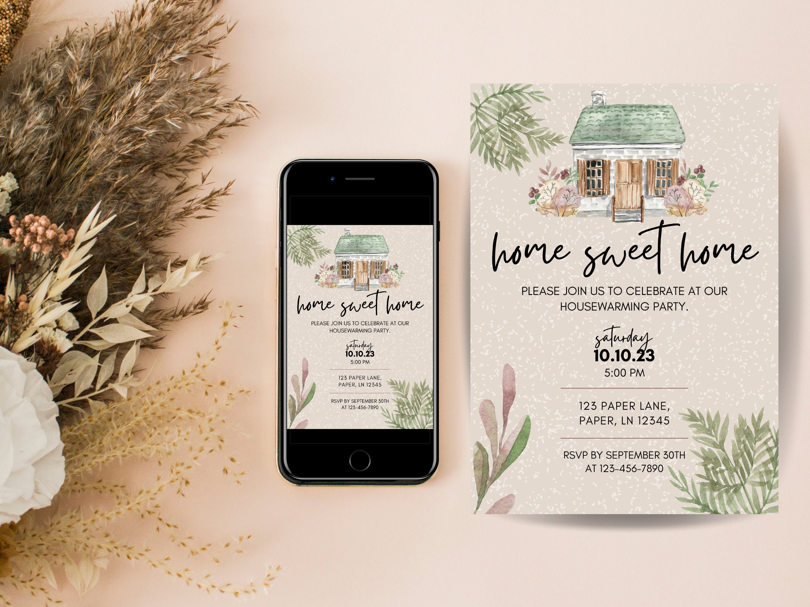 Whimsical Cottage Core Housewarming Invite - Editable Digital Download ...