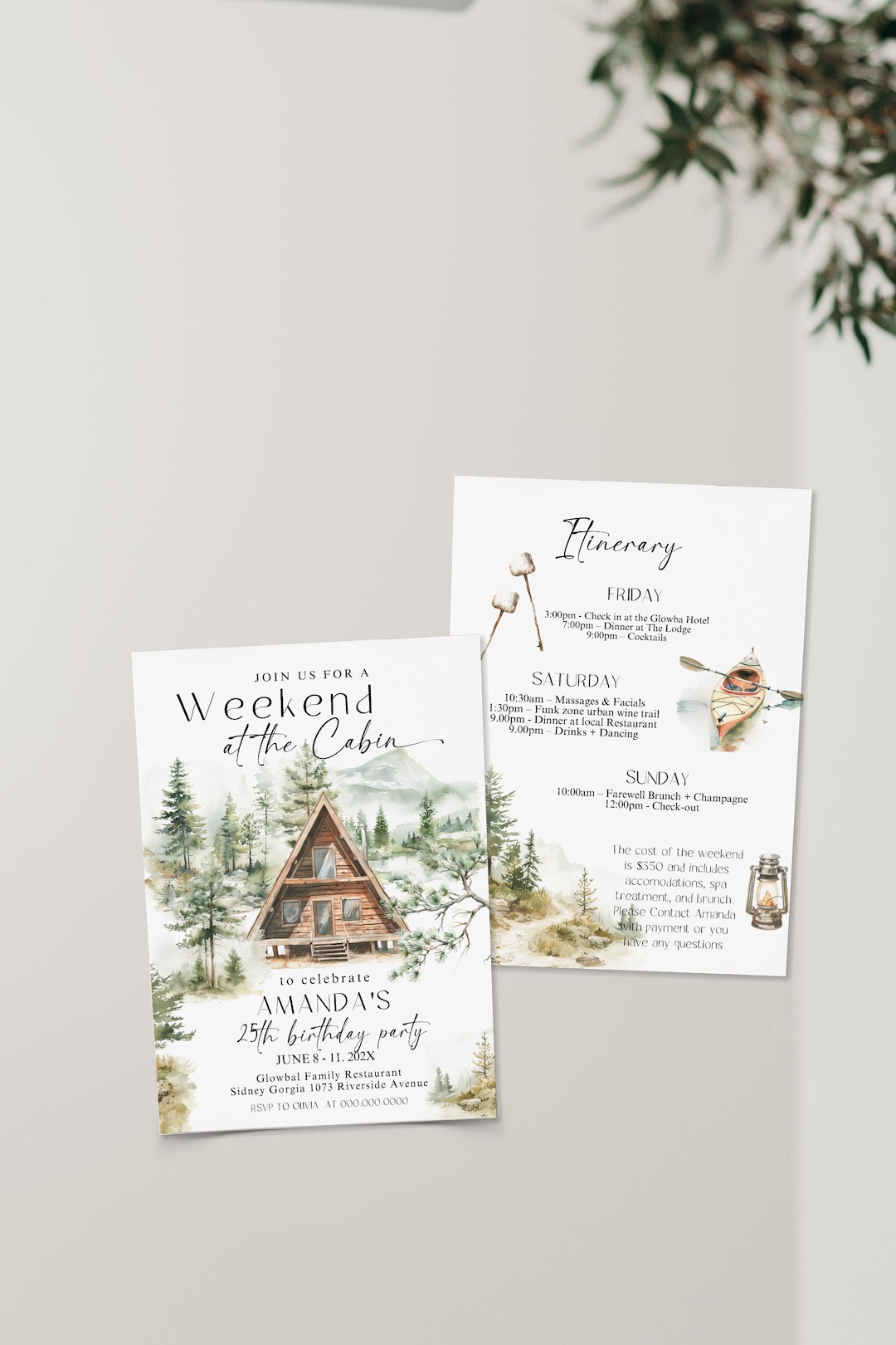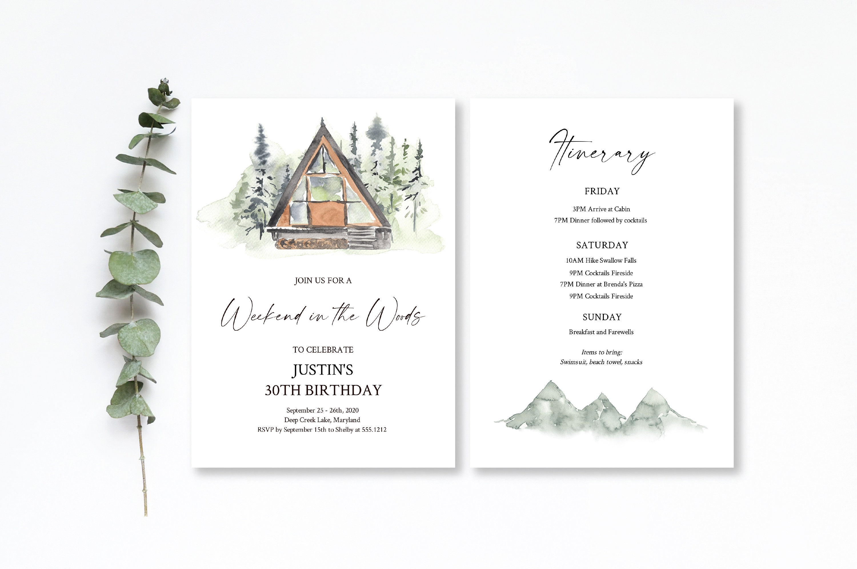 Weekend at the Cabin Invite Self-editing TEMPLATE + Mobile Invite ...