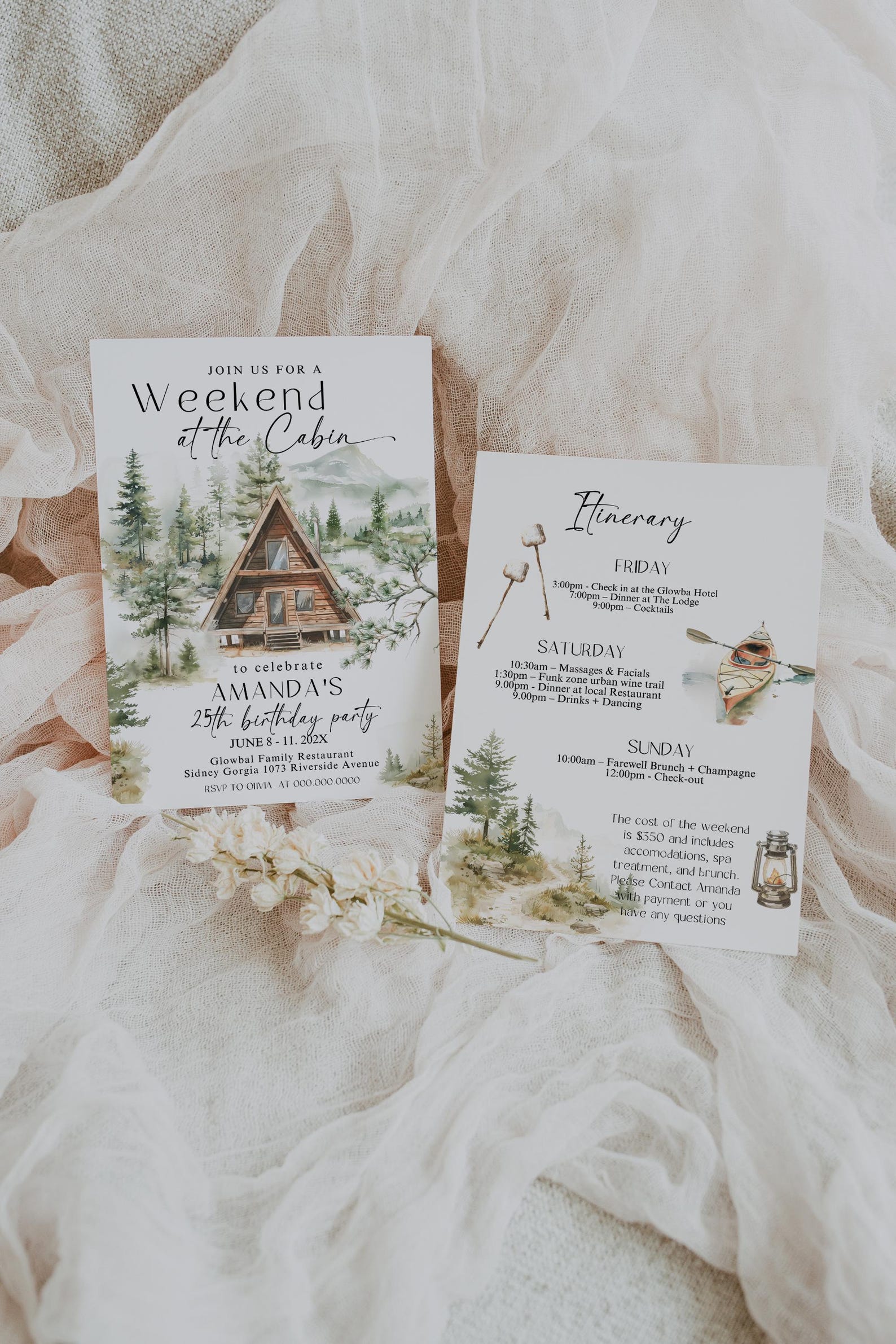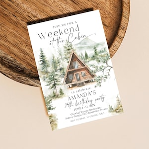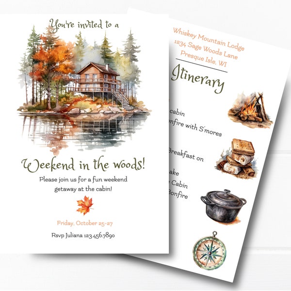 Best 12 Weekend at the Cabin Invite Self-editing TEMPLATE + Mobile ...