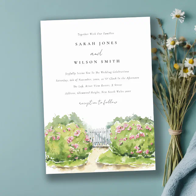 Elegant Pastel Watercolor Cottage Garden Wedding Invitation | Zazzle