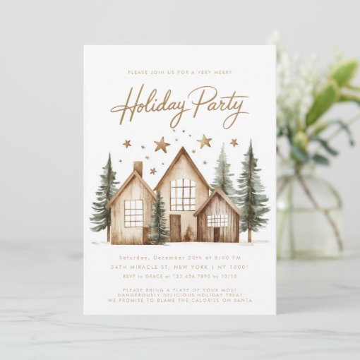 Rustic House Cabin Mountain Holiday Party Invitation | Zazzle