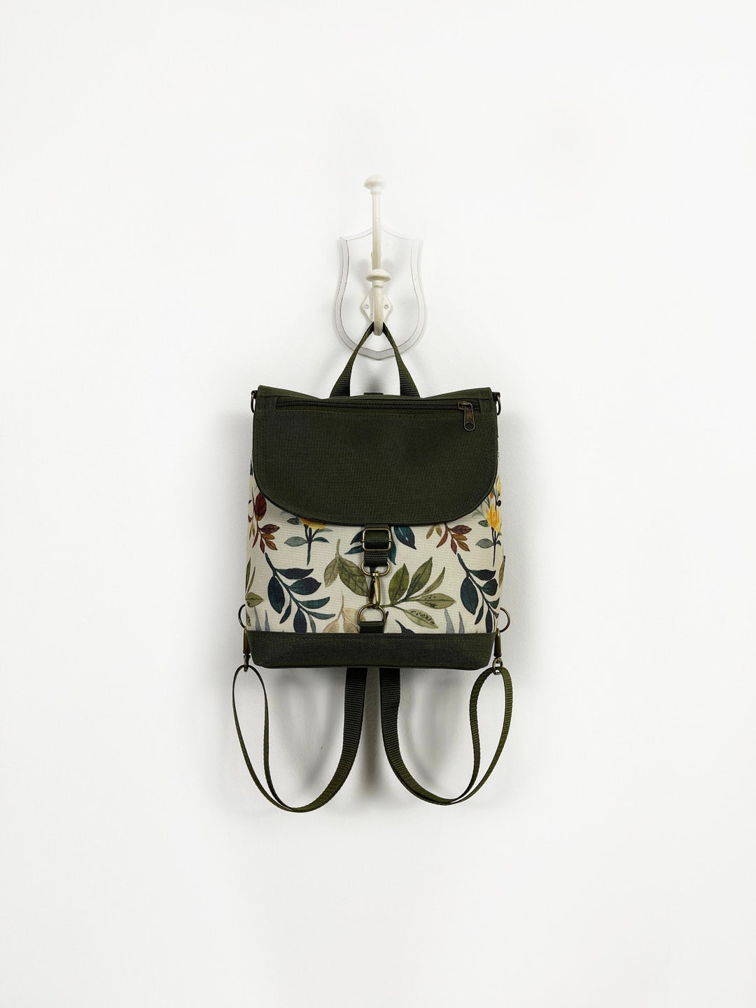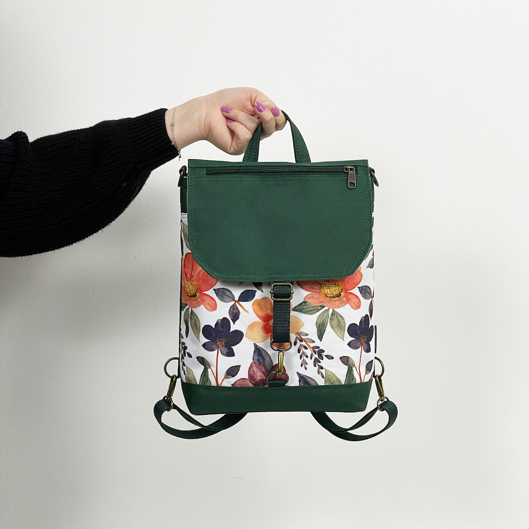 Forest Green Convertible Backpack and Purse in Cottagecore Style