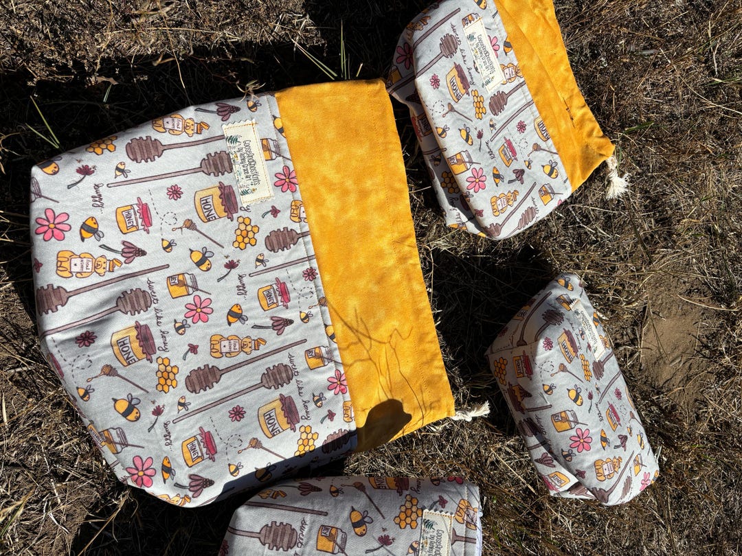 Bees & Honey Cottagecore Project Bag Work in Progress Drawstring Zipper ...