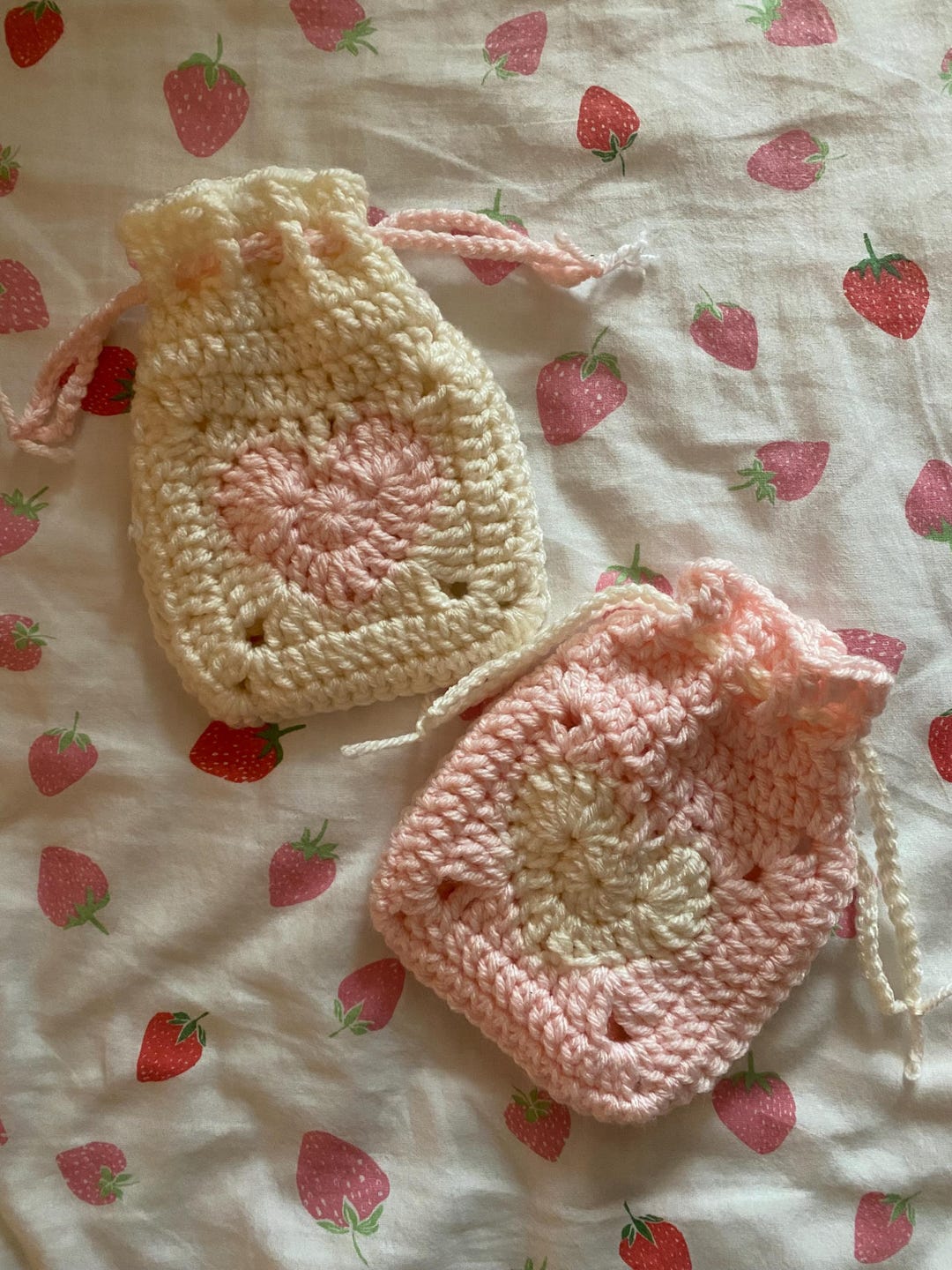 Cute Crocheted Drawstring Bag– The Cottagecore