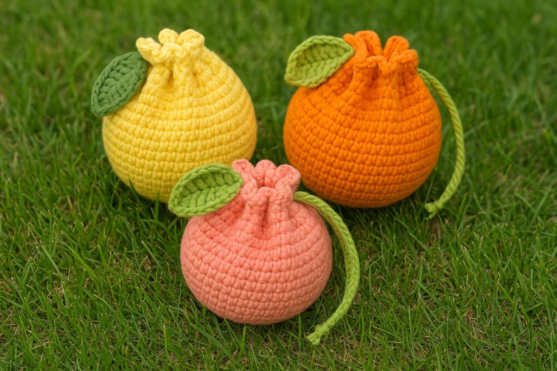Crochet Fruit Bag Pattern – Summer Cottagecore Drawstring Bag for ...