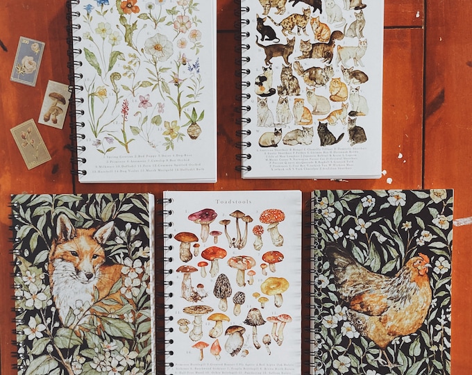 Cottagecore Notebook, Botanical Spiral Notebook, Vintage Fox Notebook ...