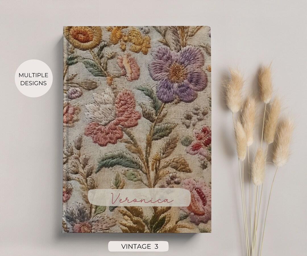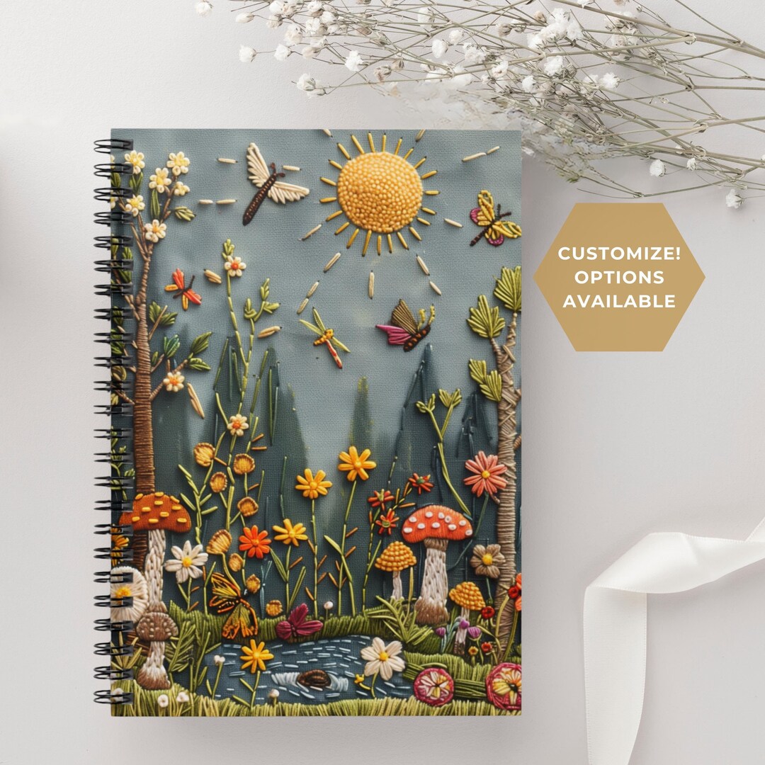 Custom Name Wildflower Cottagecore Journal, Printed Embroidered ...
