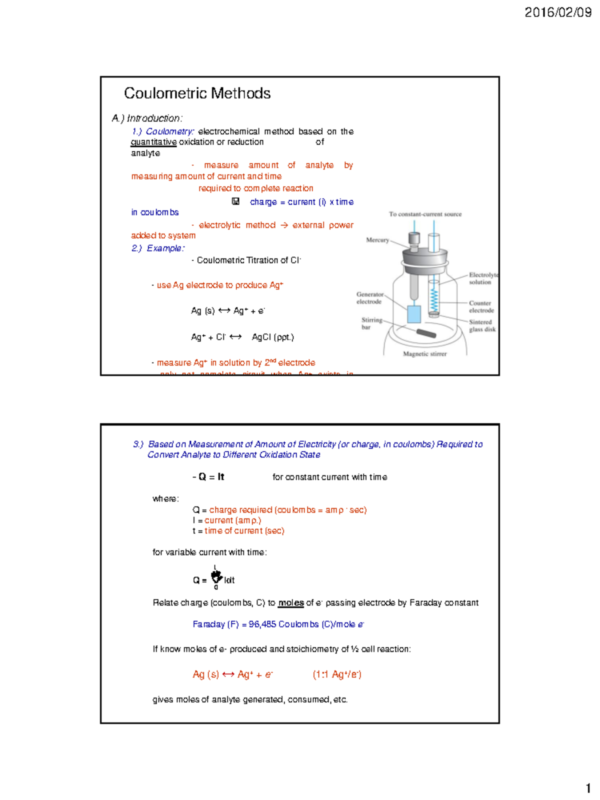 Coulometric titration - A.) Introduction: 1 .) Coulometry ...