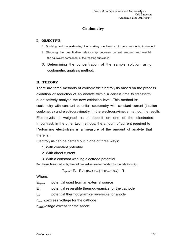 Principle and Instrumentation of Coulometry | PDF | Physical Chemistry ...