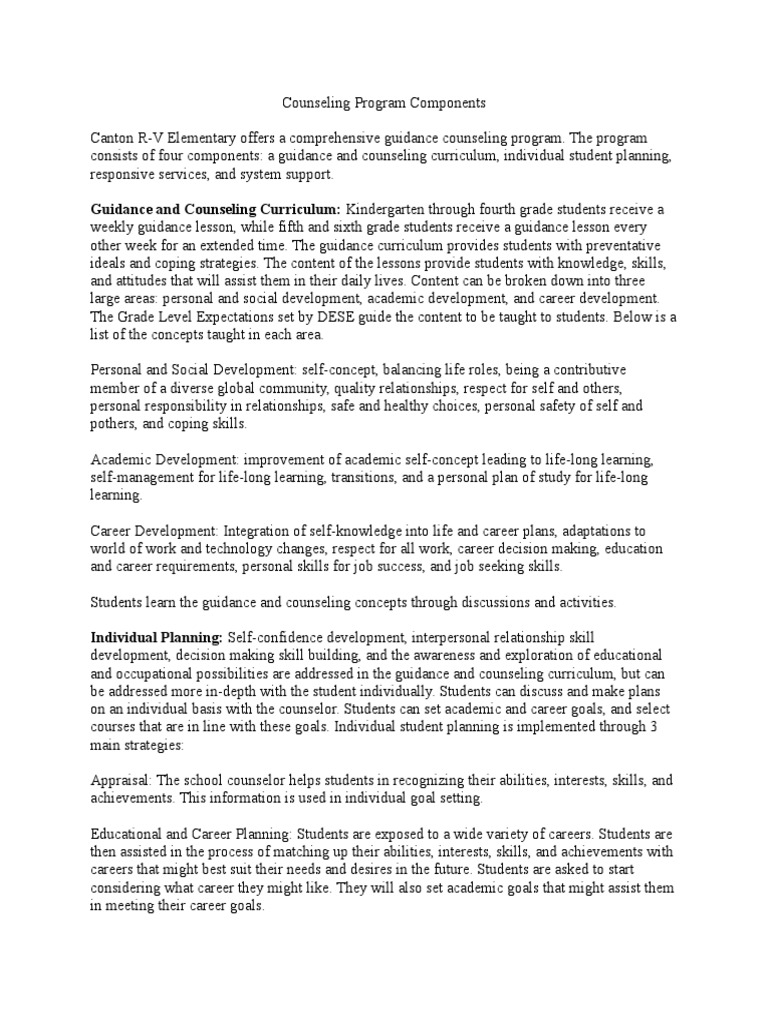 Comprehensive Guidance and Counseling Program Components | PDF | School ...
