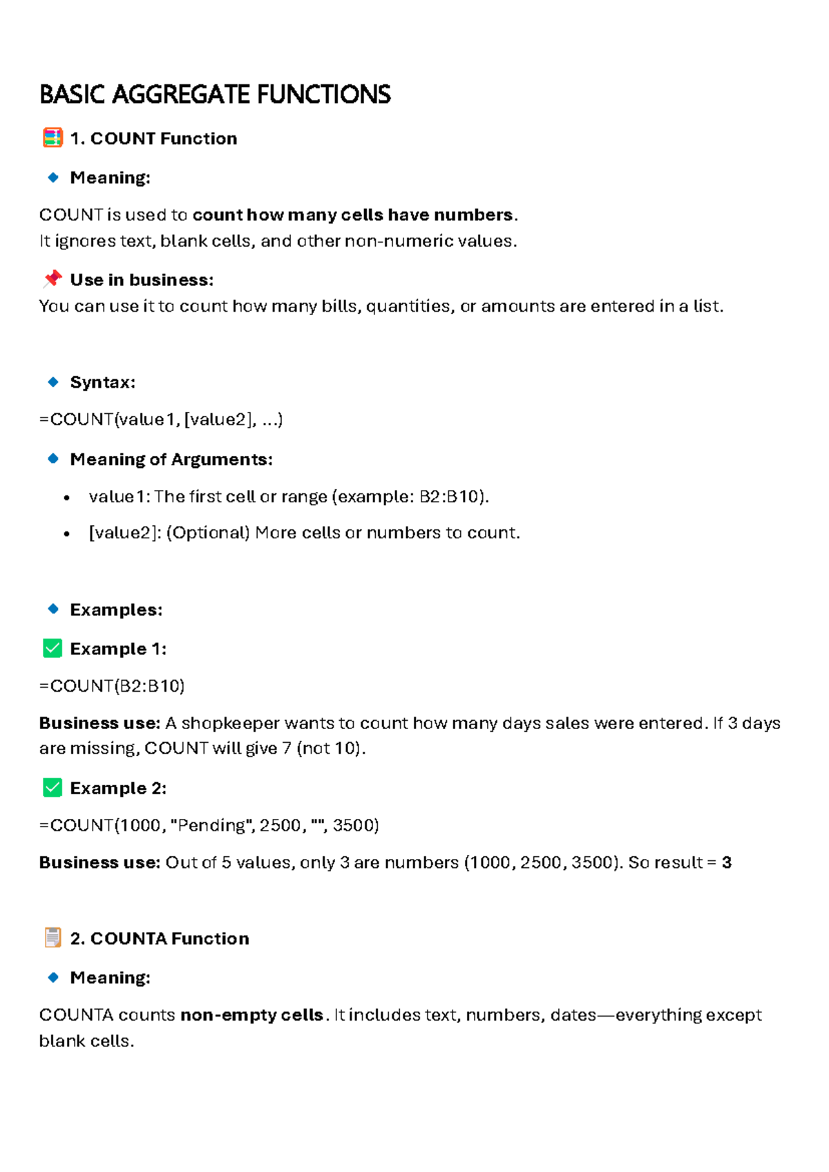 BASIC AGGREGATE FUNCTIONS: COUNT, COUNTA, SUM, and More - Studocu
