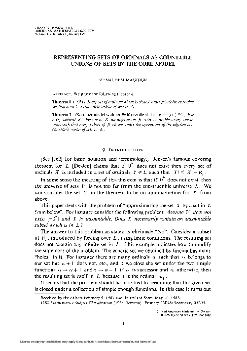 (PDF) Representing Sets of Ordinals as Countable Unions of Sets in the ...