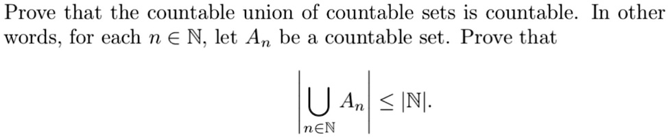 Solved Prove that the countable union of countable sets is | Chegg.com