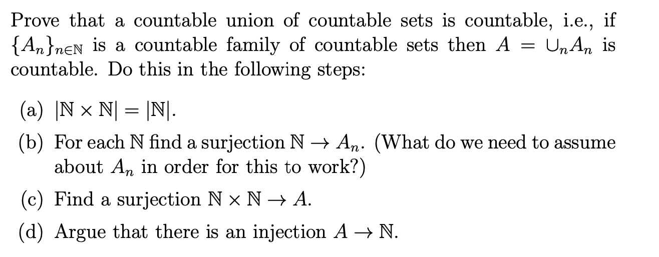Solved (a) Prove that a countable union of countable sets is | Chegg.com
