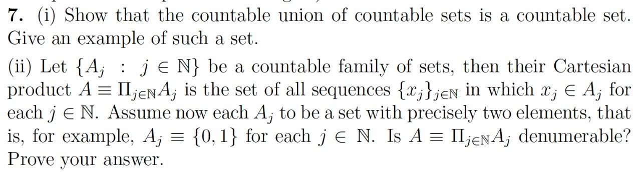 Solved 7. (i) Show that the countable union of countable | Chegg.com