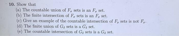 Solved 10. Show that (a) The countable union of F, sets is | Chegg.com