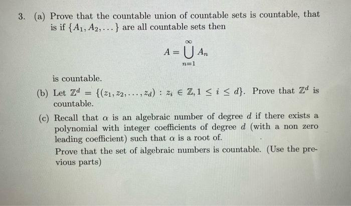 Solved 3- Prove a countable union of countable sets is | Chegg.com