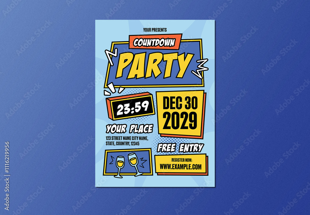 Blue Bold Comic Countdown Party Flyer Layout Stock Template | Adobe Stock