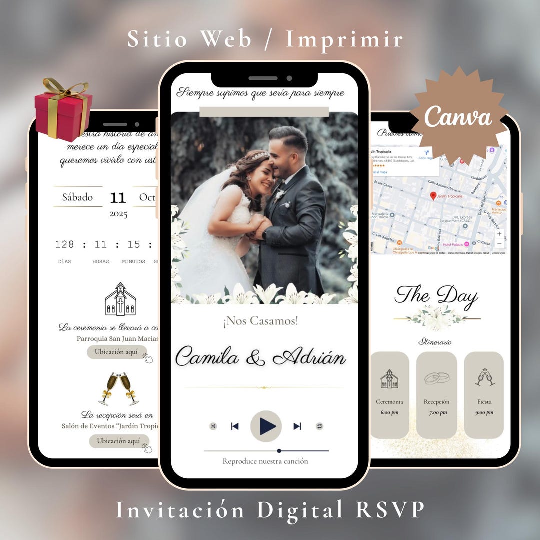 Digital Wedding Website Invitation: RSVP, Map & Countdown (canva ...