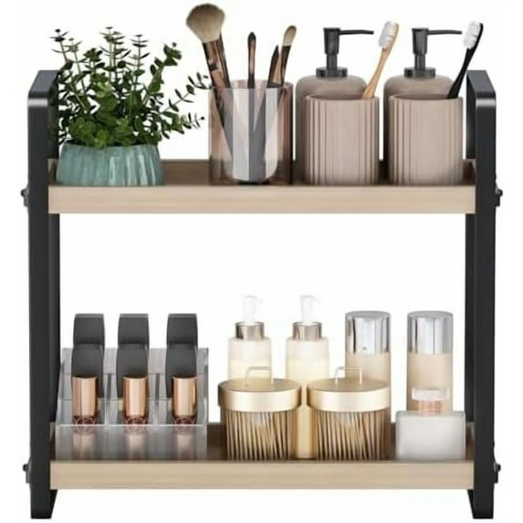 2 Tier Bathroom Counter Organizer Wood Bathroom Storage Shelf Spice ...