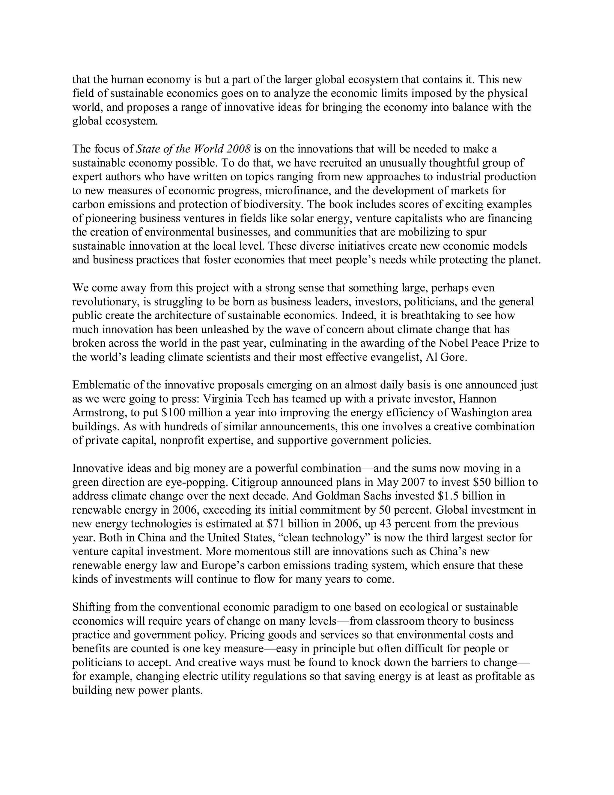 State of the World 2008 Toward a Sustainable Global Economy The ...
