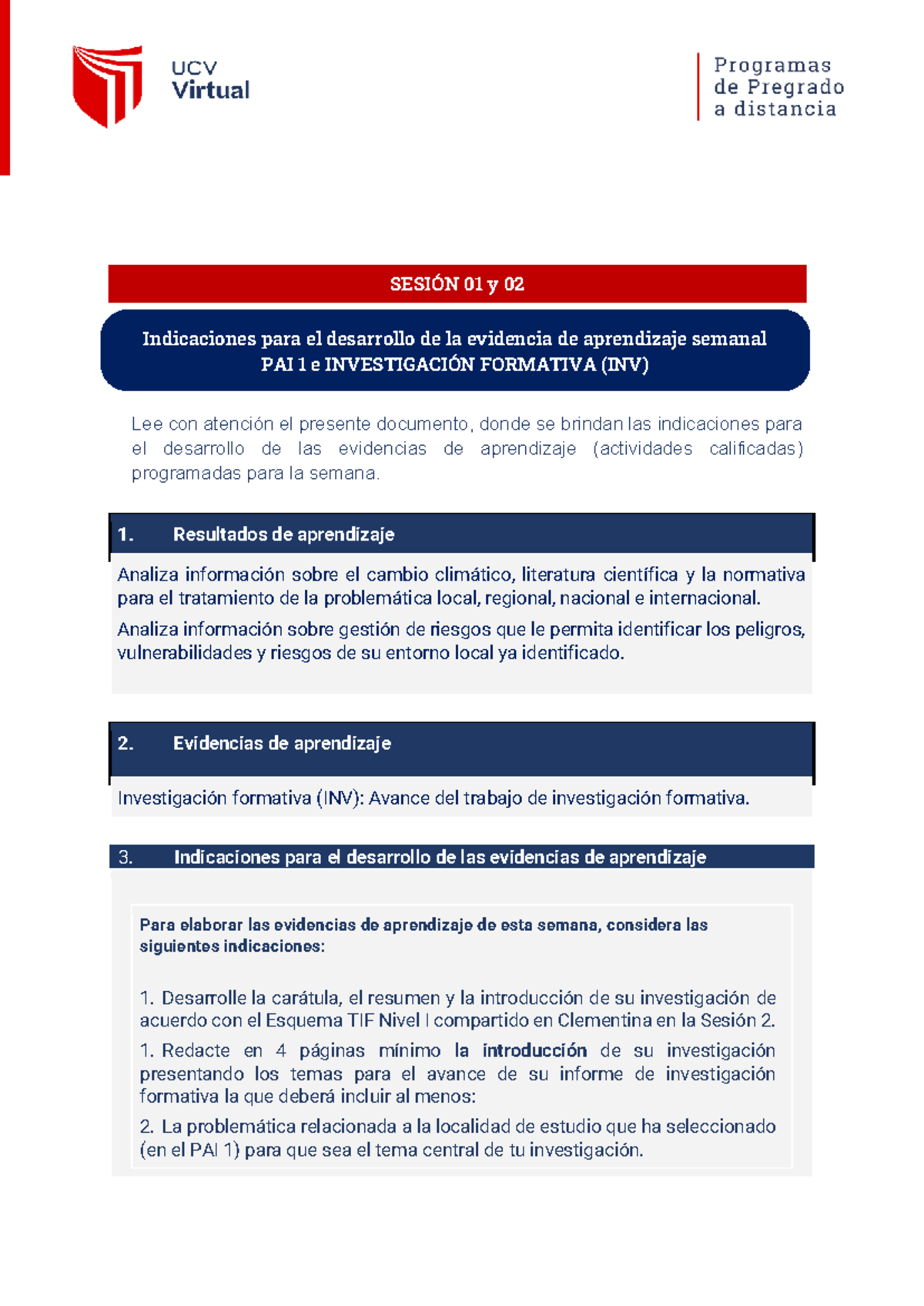 Indicaciones para el Desarrollo de Evidencias de Aprendizaje PAI 1 ...