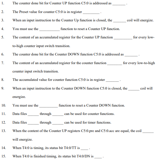 The counter done bit for Counter UP function C5:0 is | Chegg.com