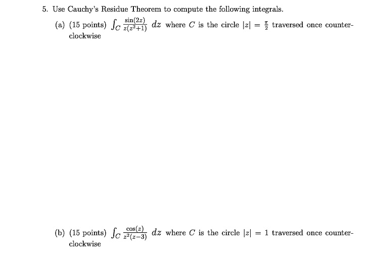 5. Use Cauchy's Residue Theorem to compute the following integrals. (a ...
