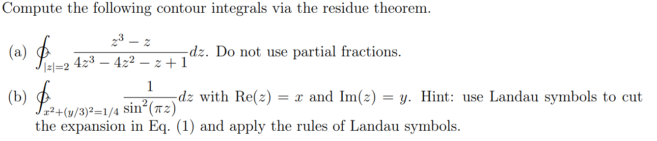 Solved Compute the following contour integrals via the | Chegg.com