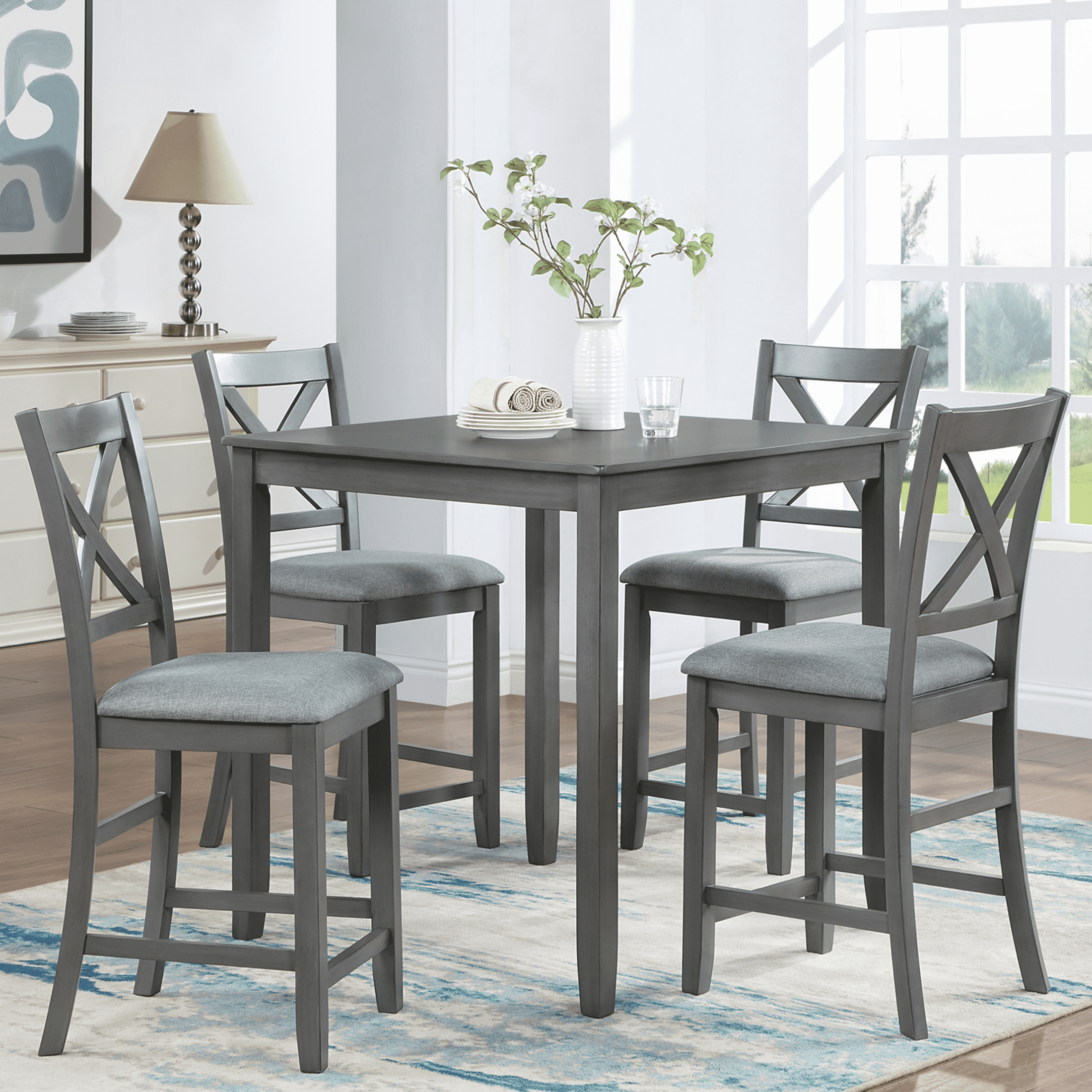 Mason Transitional 5-Piece Counter Height Dining Table Set, Gray ...