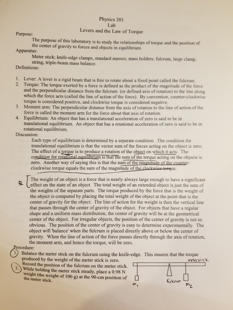 Text: Draw a diagram of your ruler and mass system in equilibrium ...