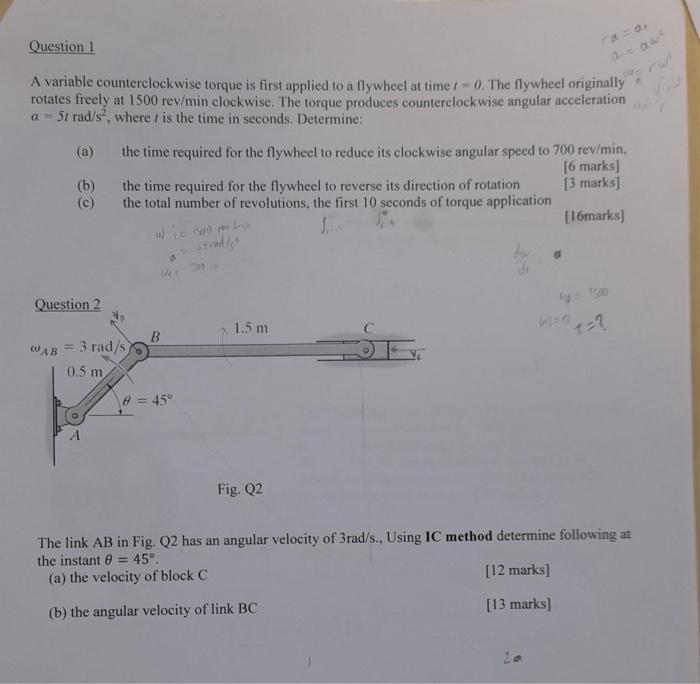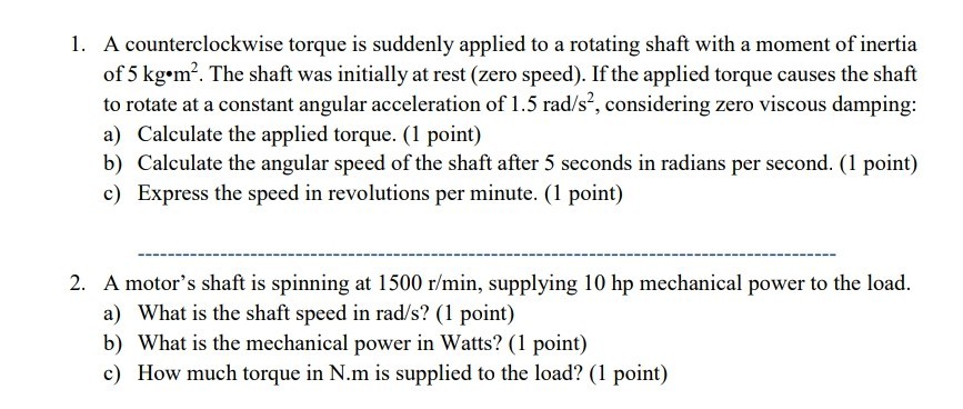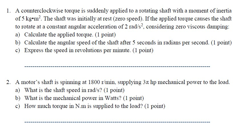 Find counter clockwise torque (Nm) and mass of the | Chegg.com