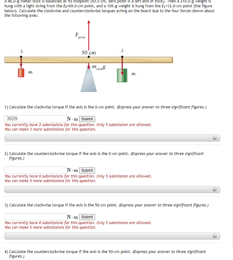 Solved 1) Calculate the clockwise torque if the axis is the | Chegg.com