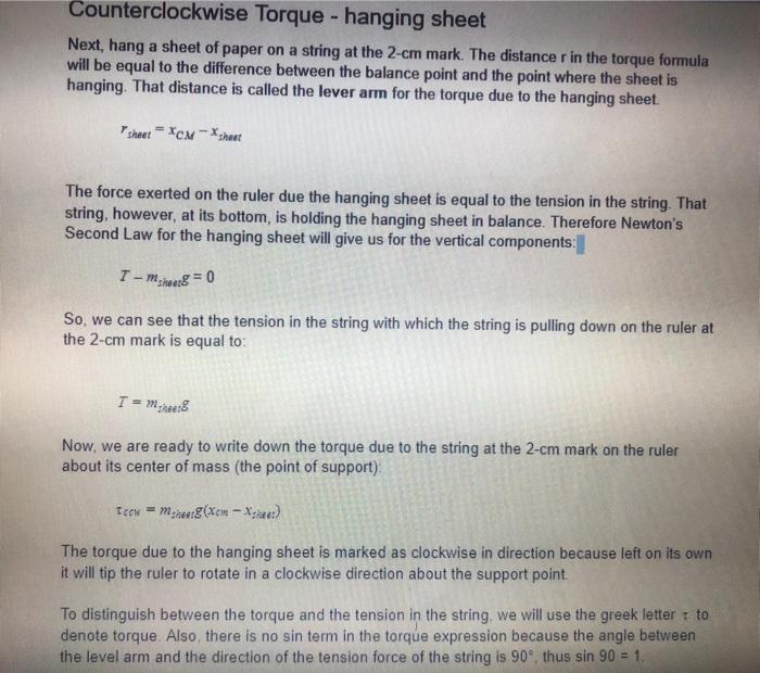 Solved Counterclockwise Torque - hanging sheet Next, hang a | Chegg.com