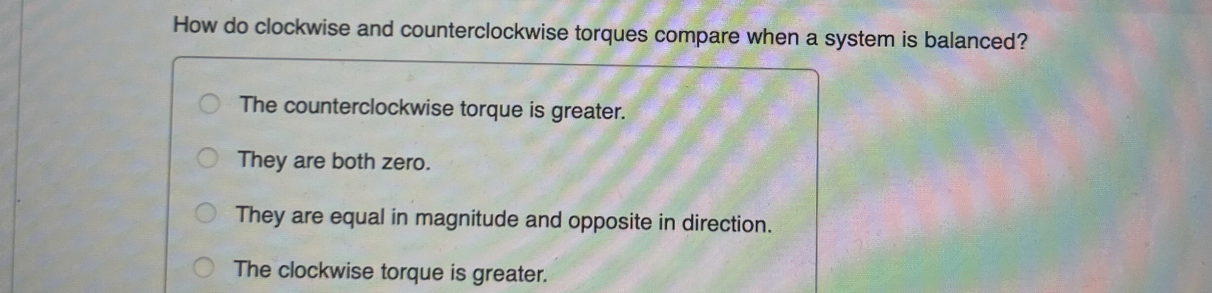 [Physics] How do clockwise and counterclockwise torques compare when a ...