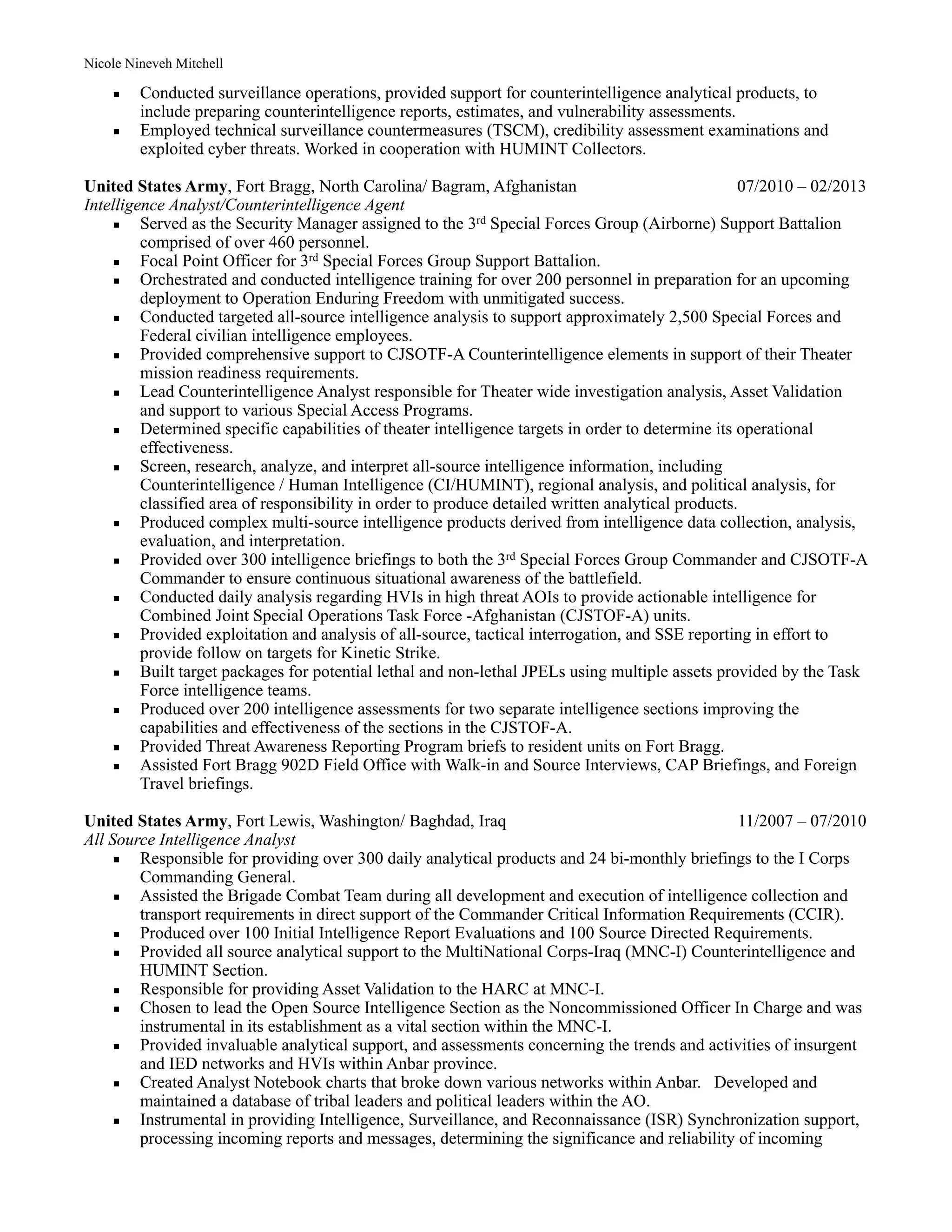 Mitchell, Nicole N Resume Targeting | PDF | Defense Industry | Industries