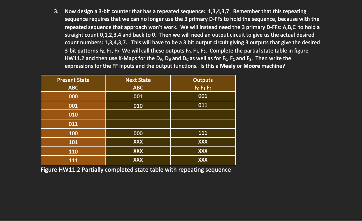 Solved 3. Now design a 3-bit counter that has a repeated | Chegg.com