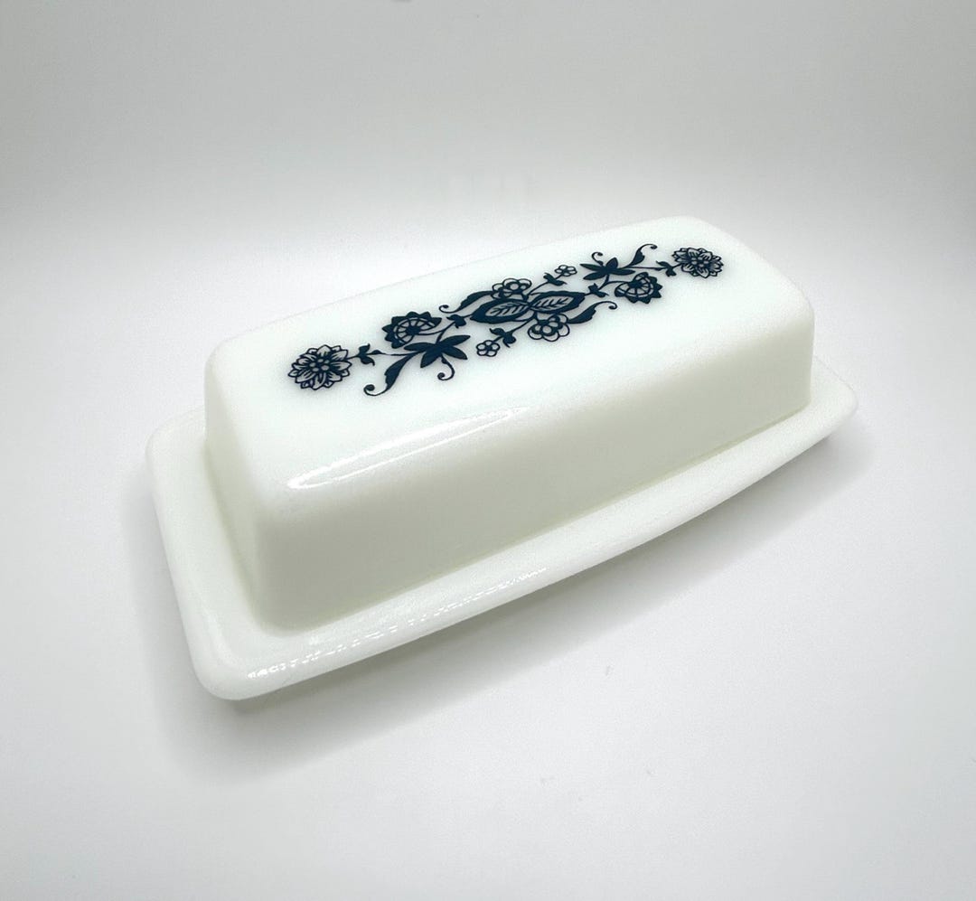 1970s Vintage PYREX Old Town Blue Milk Glass Covered Lidded Butter Dish ...