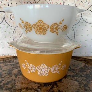 Three Pieces of Vintage Butterfly Gold and White Pyrex Casserole With ...
