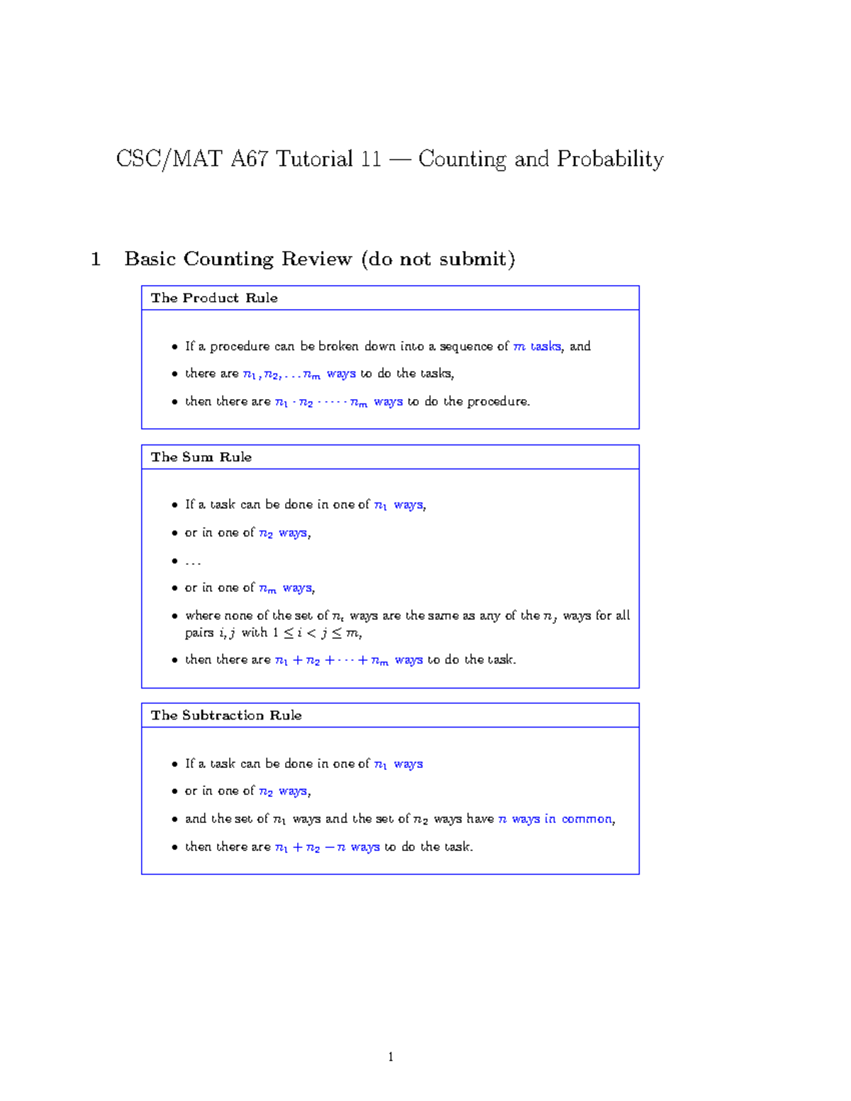 CSCA67 Tutorial 11 — Counting and Probability — Review & Solutions ...
