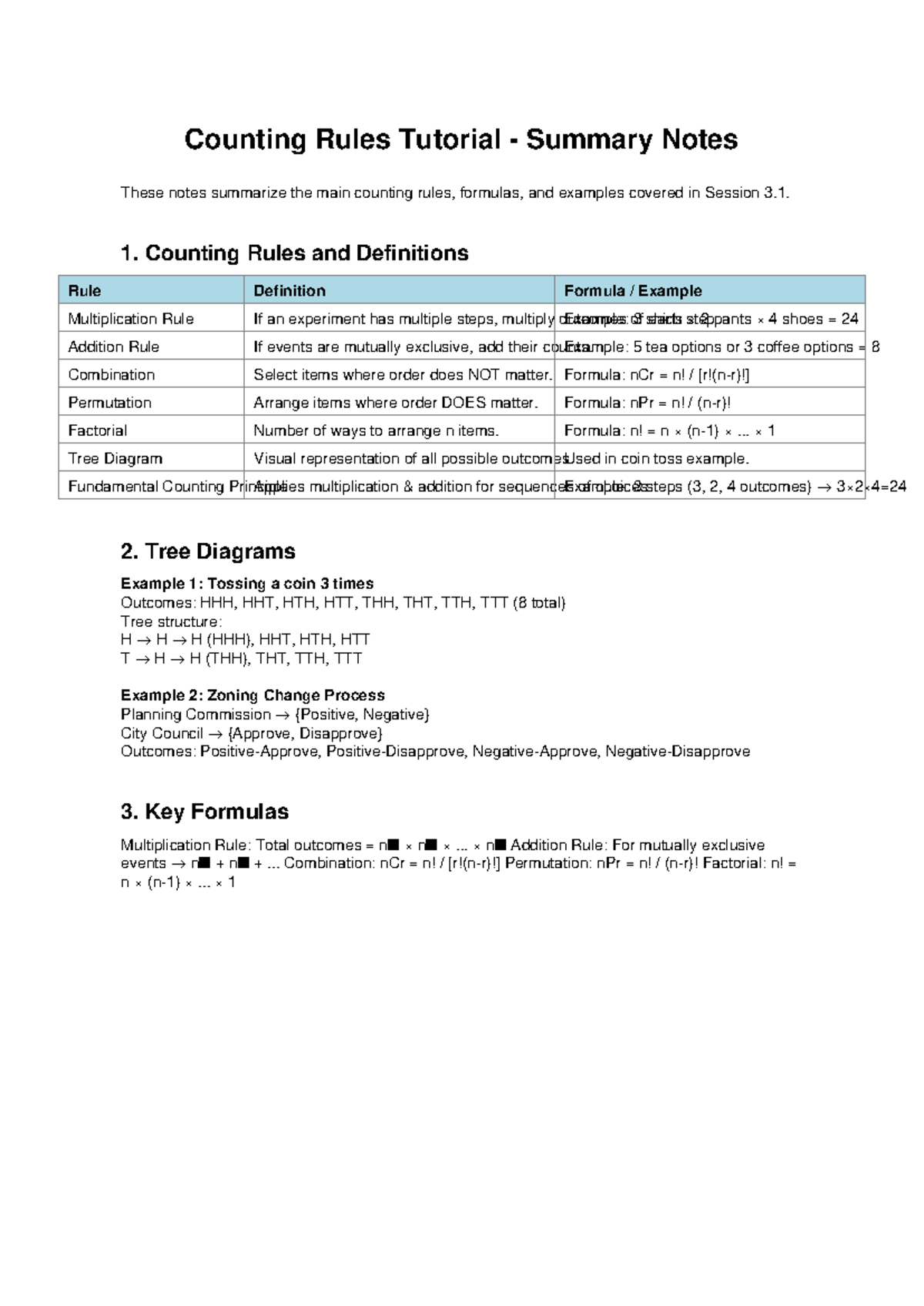 Counting Rules Tutorial Summary Notes (Session 3.1) - Studocu