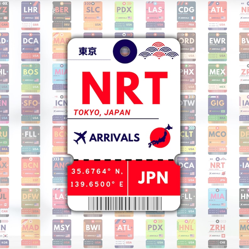 Tokyo Narita NRT Airport Luggage Tag Sticker | Boarding Pass Travel ...