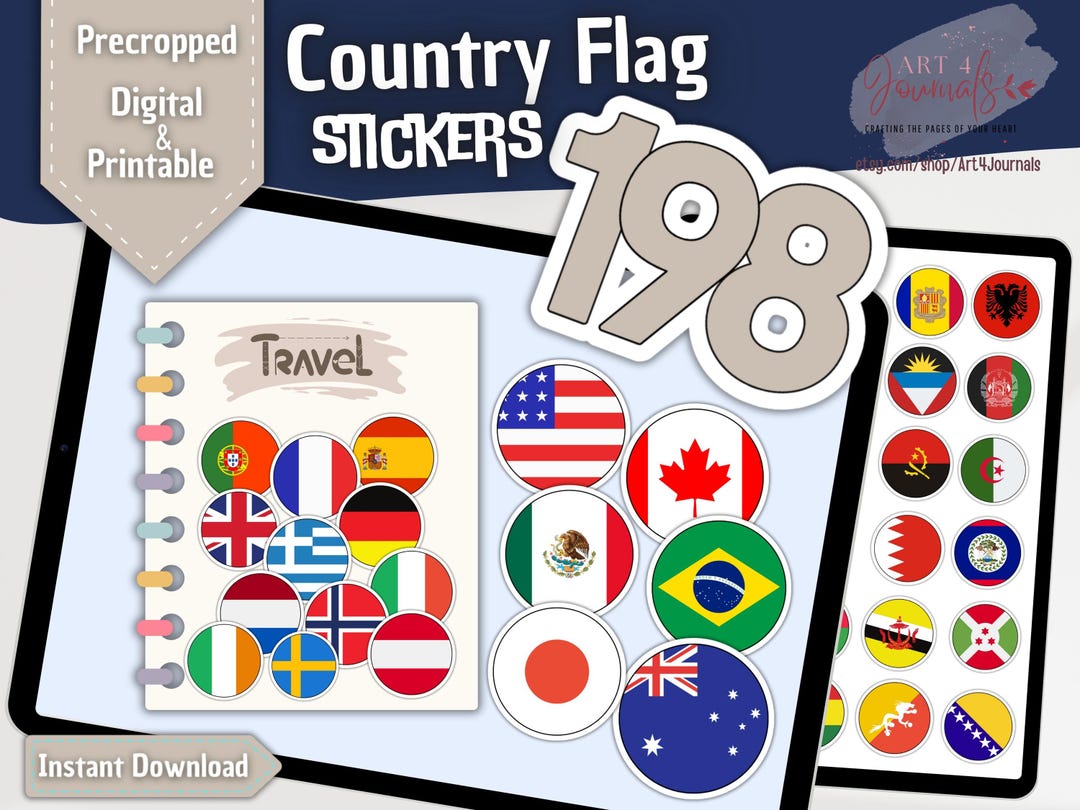 198 COUNTRY FLAG Stickers | for Your Travel Journal | for Goodnotes ...