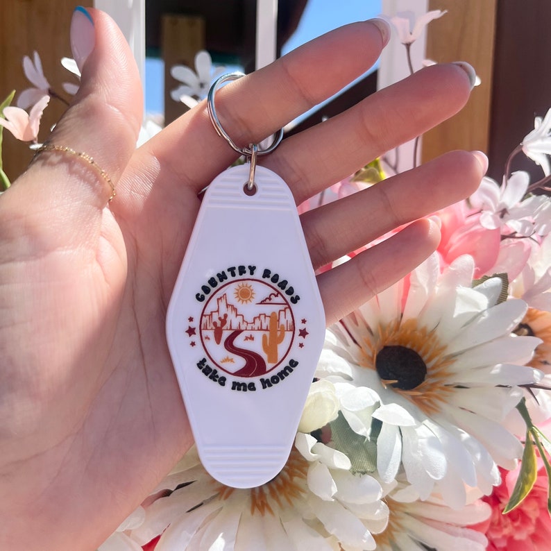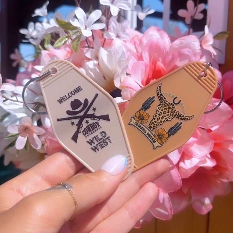 UV DTF Motel Keychains, Country Keychains, Beige Color Motel Keychains ...