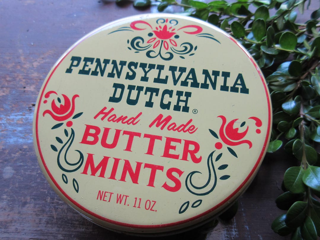 Vintage Pennsylvania Dutch Butter Mints Yellow Round Tin Storage ...